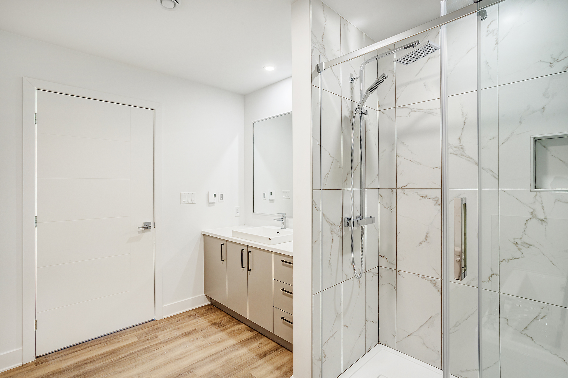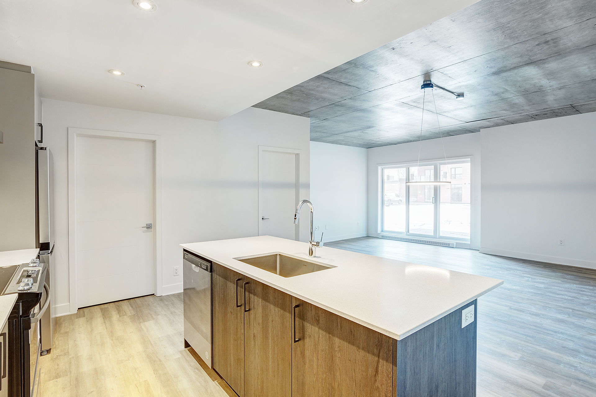 Cinq électroménagers inclus, Climatisation, système de déverrouillage intelligent, comptoirs en quartz, plafond de plus de 9 pieds en béton, finition de qualité supérieure.