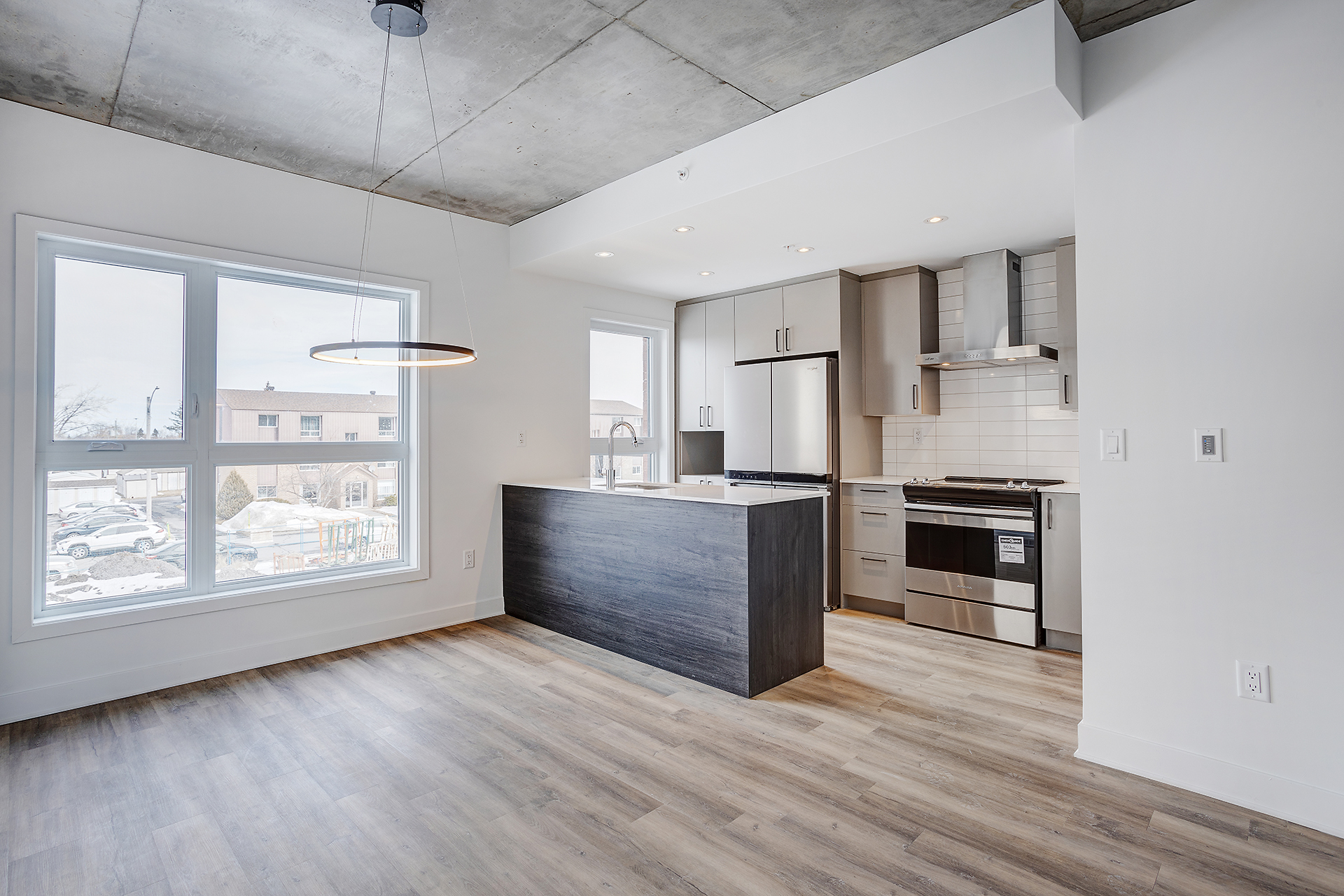 Cinq électroménagers inclus, Climatisation, système de déverrouillage intelligent, comptoirs en quartz, plafond de plus de 9 pieds en béton,   finition de qualité supérieure.