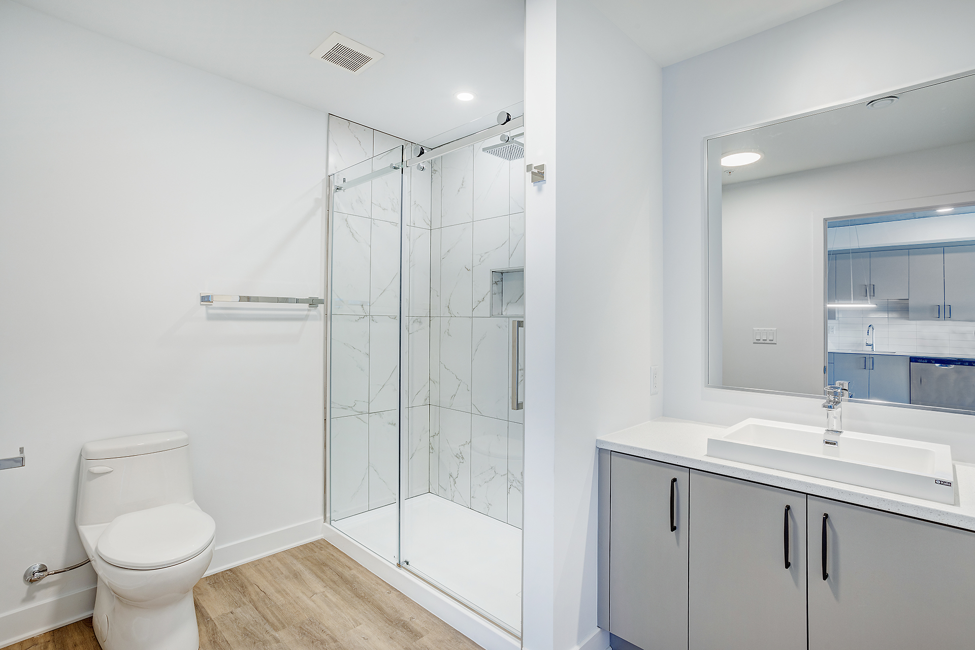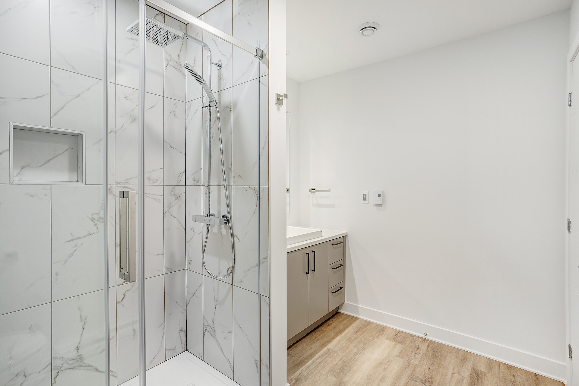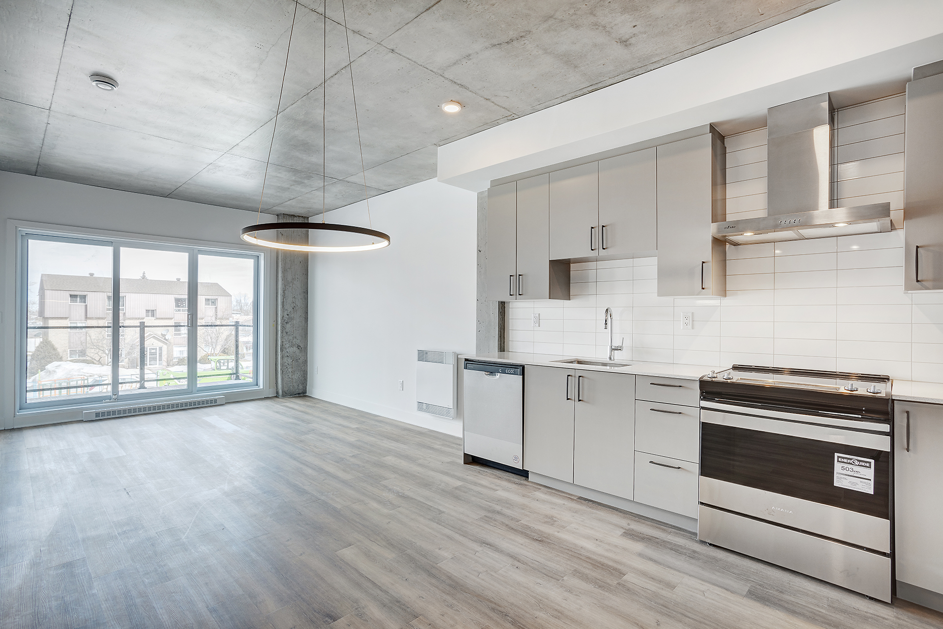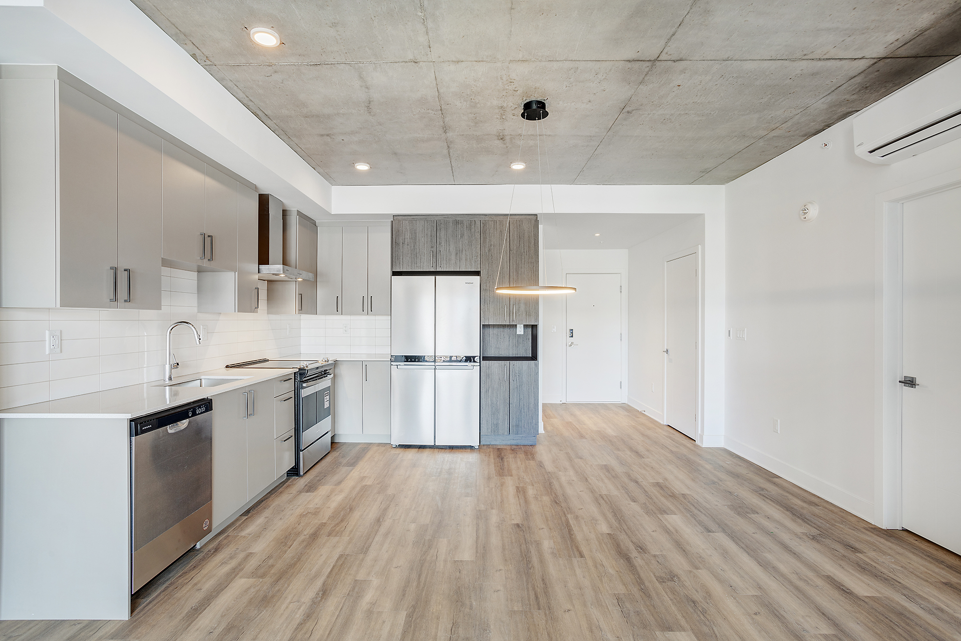 Cinq électroménagers inclus, Climatisation, système de déverrouillage intelligent, comptoirs en quartz, plafond de plus de 9 pieds en béton,   finition de qualité supérieure.